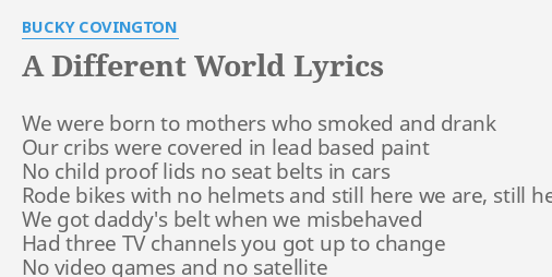 Its a different world ooh ooh Than where ya come from. I know my parents love me Stand behind me. It was a different world.